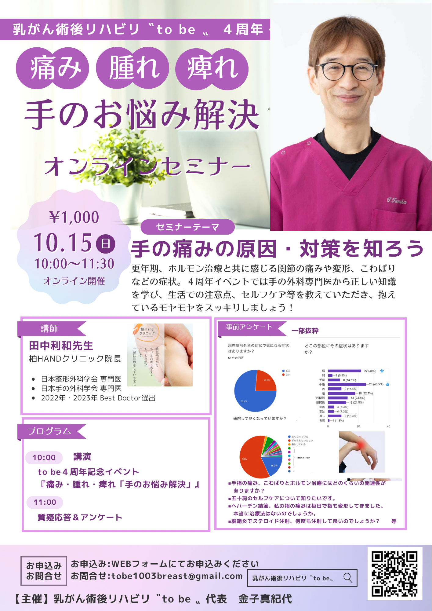 内容は『ばね指、手根管症候群、変形性関節症、母指CM関節症、ドケルバン腱鞘炎、について』です。